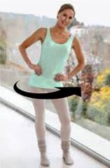 De pie, con el cuerpo erguido, los pies en paralelo y separados tomando como referencia el ancho de la cadera, apoyar las manos en la cintura, rotándola de manera circular. Realizar siete círculos hacia un lado y hacia el otro.