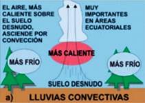 a) Ascenso convectivo: el aire, al entrar en contacto con el suelo, se calienta, se vuelve más liviano y, por lo tanto asciende en la atmósfera. Como al ascender disminuye la presión atmosférica, se produce la expansión mencionada.